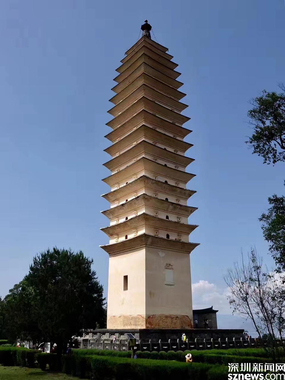 崇圣寺三塔與蝴蝶泉一樣位于洱海西岸,崇圣寺三塔由一大二小組成。李仁奇 攝