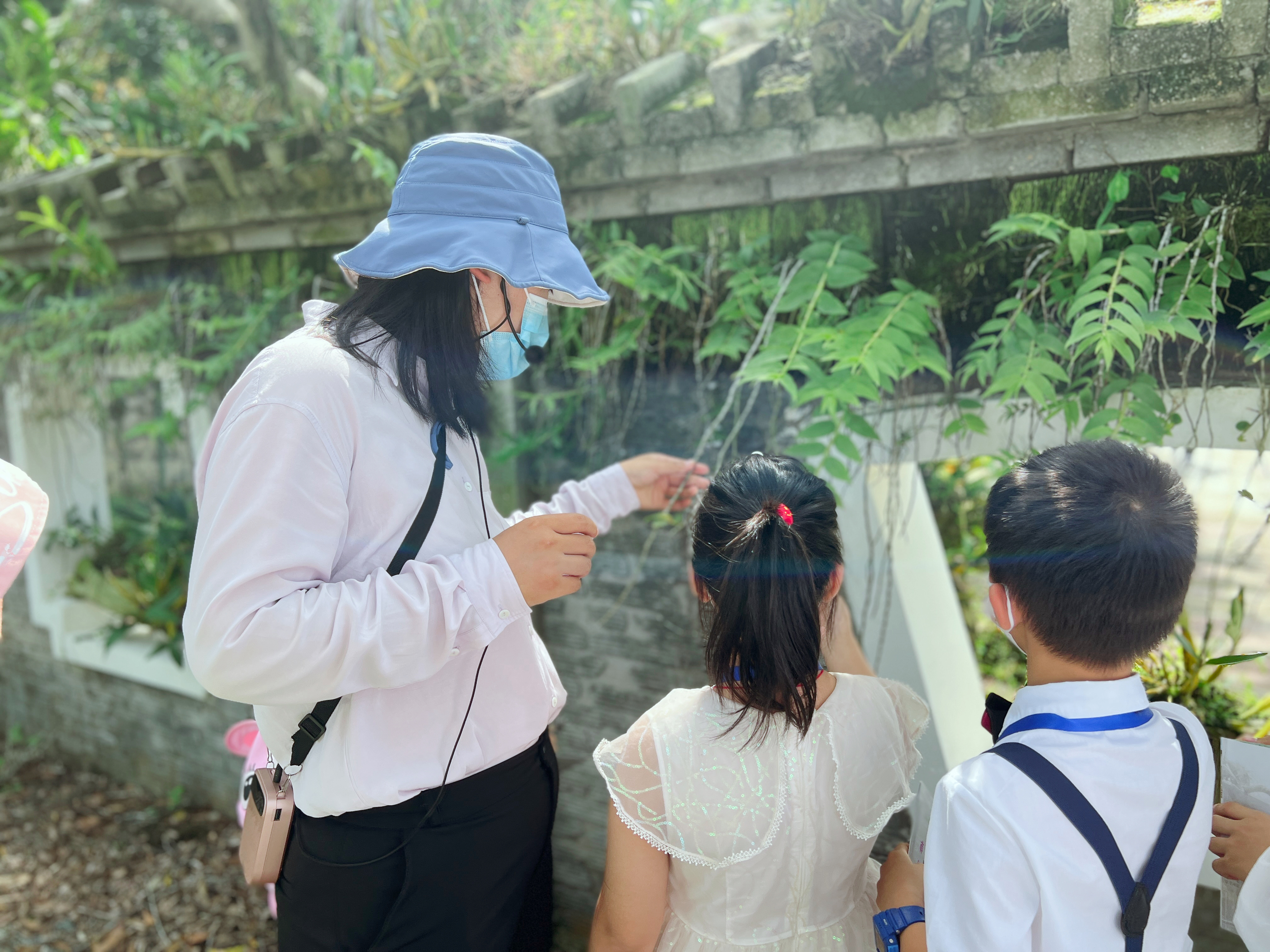 潘云云為文友們講解蘭科中心內(nèi)的植物