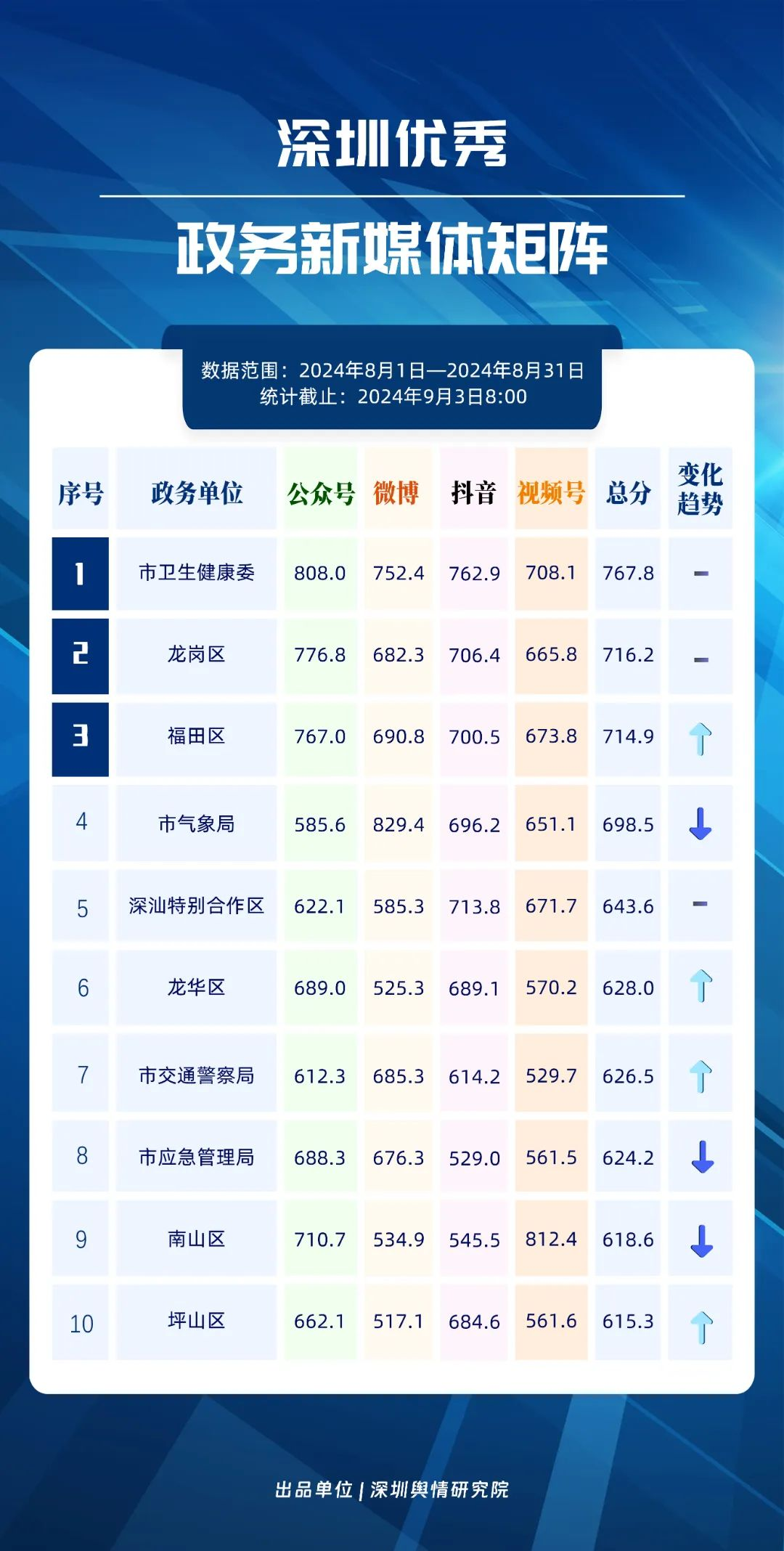 《深圳優(yōu)秀政務(wù)新媒體矩陣》2024年8月榜單如期而至,讓我們一同期待,哪些矩陣能夠在激烈的競爭中脫穎而出,成為引領(lǐng)政務(wù)新媒體服務(wù)與創(chuàng)新的典范。