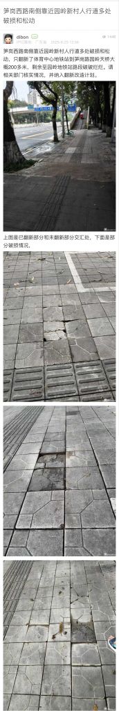 34. 帖文《筍崗西路南側(cè)靠近園嶺新村人行道多處破損和松動(dòng)》