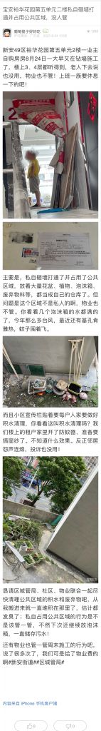 37. 帖文《寶安裕華花園第五單元二樓私自砸墻打通并占用公共區(qū)域,沒人管》