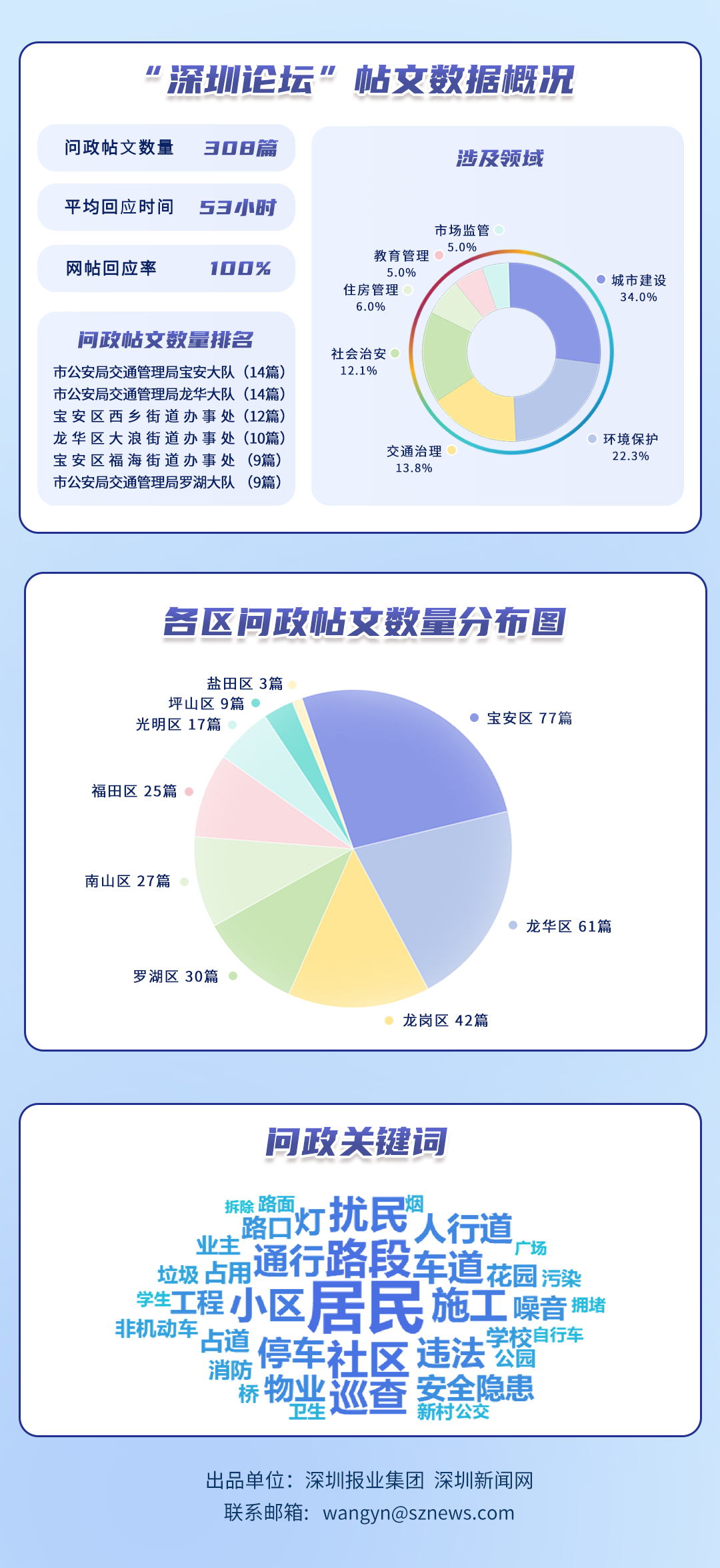 榜單帖文數(shù)據源自深圳論壇,均為網民點名希望涉事單位回應的網帖,共涵蓋114個單位、308篇網帖。所采集帖文發(fā)布時間為2025年11月1日至11月30日,采集截止時間為2025年12月1日。
