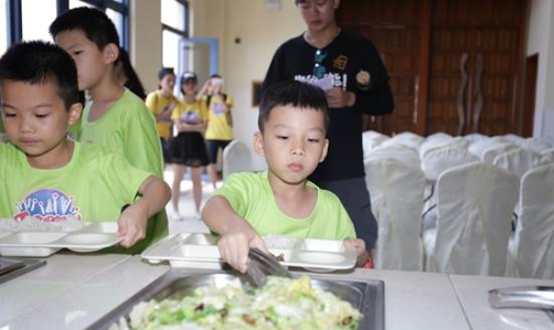 家長與孩子抵達活動現(xiàn)場,由孩子自行簽到,領取活動用品;家長隨工作人員指引入座,參與開營儀式。