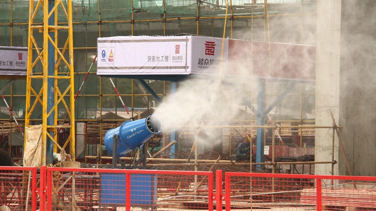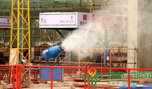 項(xiàng)目開工以來(lái),采取自動(dòng)噴淋系統(tǒng)、高壓霧炮機(jī)等措施,治理?yè)P(yáng)塵污染。